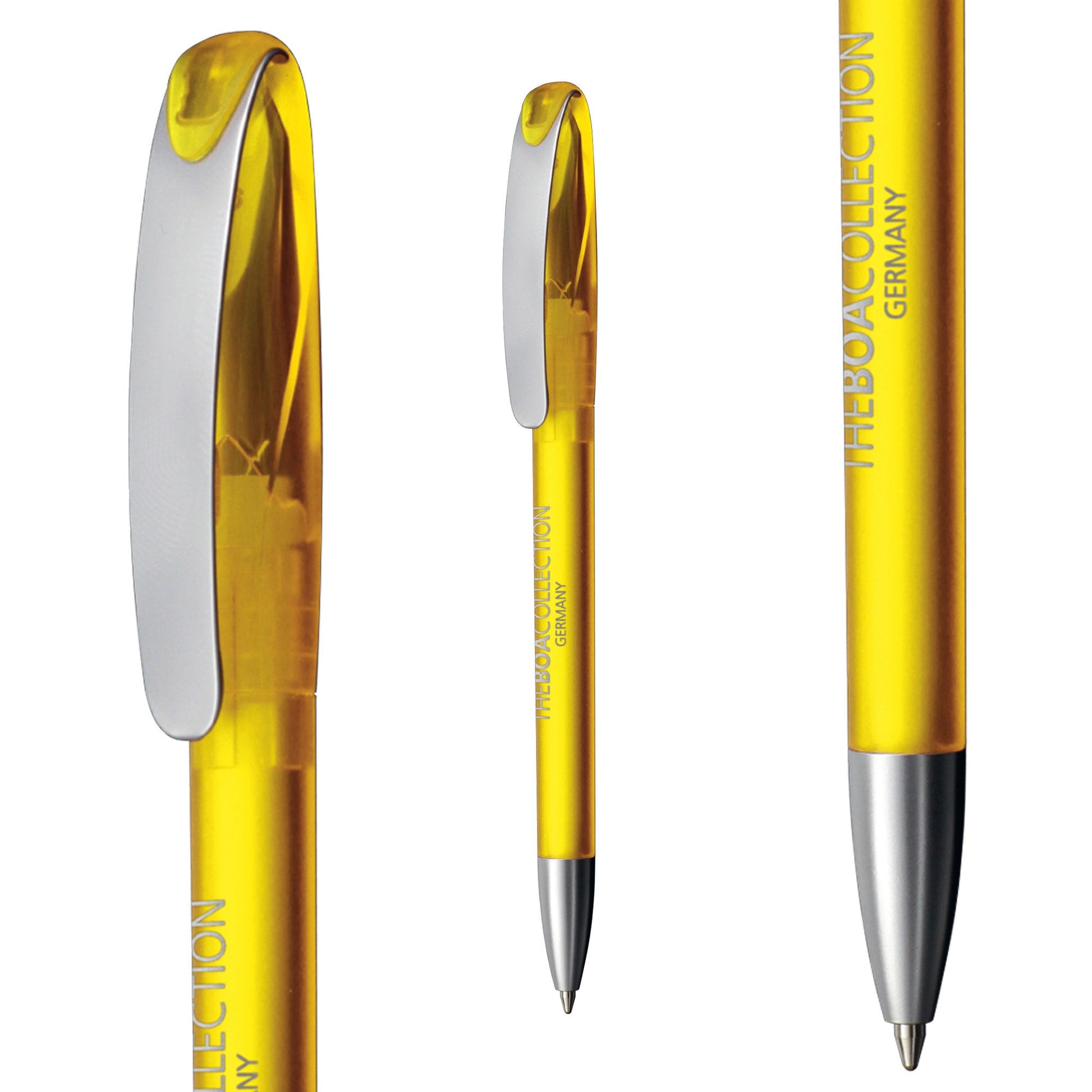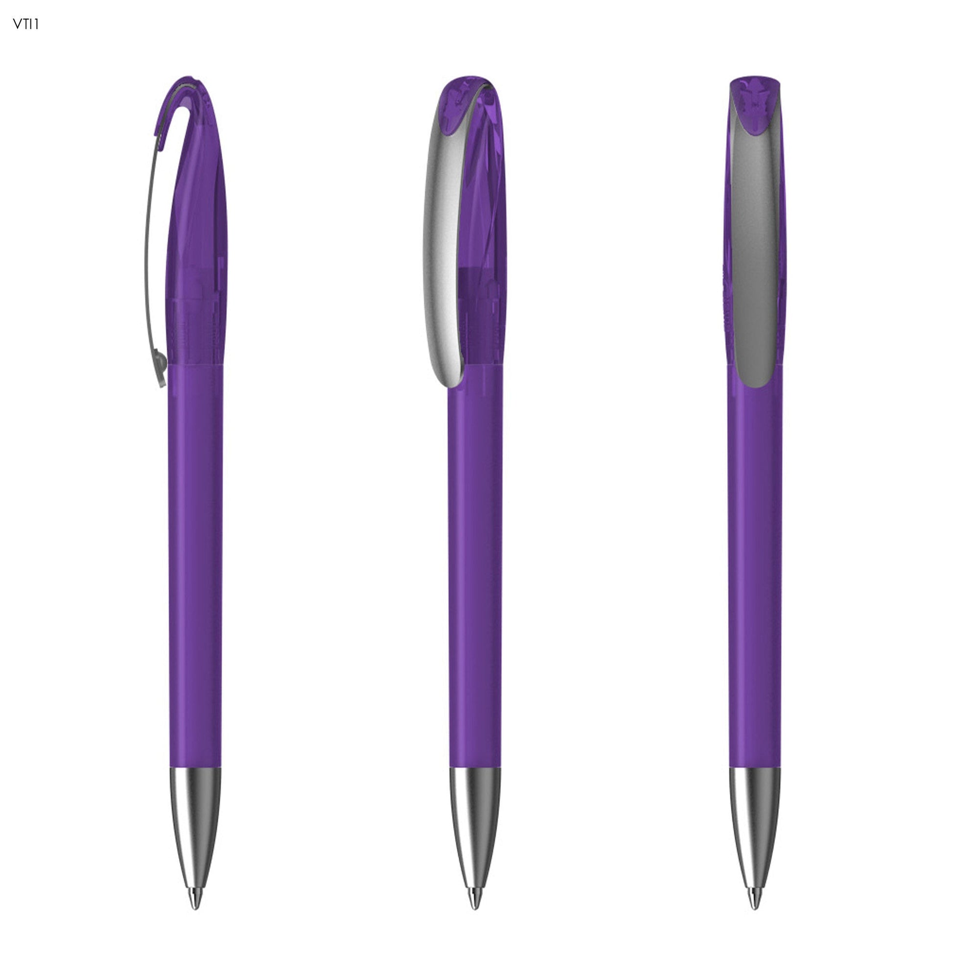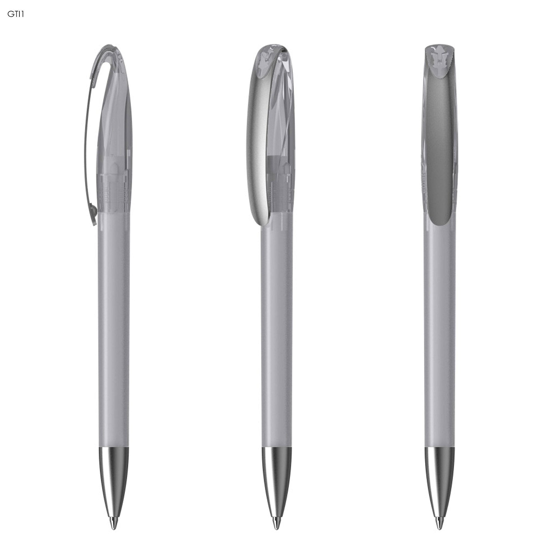 Klio the iconic European brand since 1900 now available worldwide. (Klio Model: 41182) Twist-action pen features a stylish frosted translucent plastic design with a satin nickel-plated brass metal tip and clip offering a spacious printing area. Equipped with a high-quality silktech German ink refill meeting ISO 12757-2 standards with a 3-year shelf life and boasting an impressive 3000 meters of writing distance three times longer than standard pens. Crafted with a tungsten carbide ball for superior writing quality. Designed and manufactured in Germany exclusively offered through Dex Collection in Australia and New Zealand. Custom colour options available for orders exceeding 5000 units. Minimum order quantity: 500 units per colour.