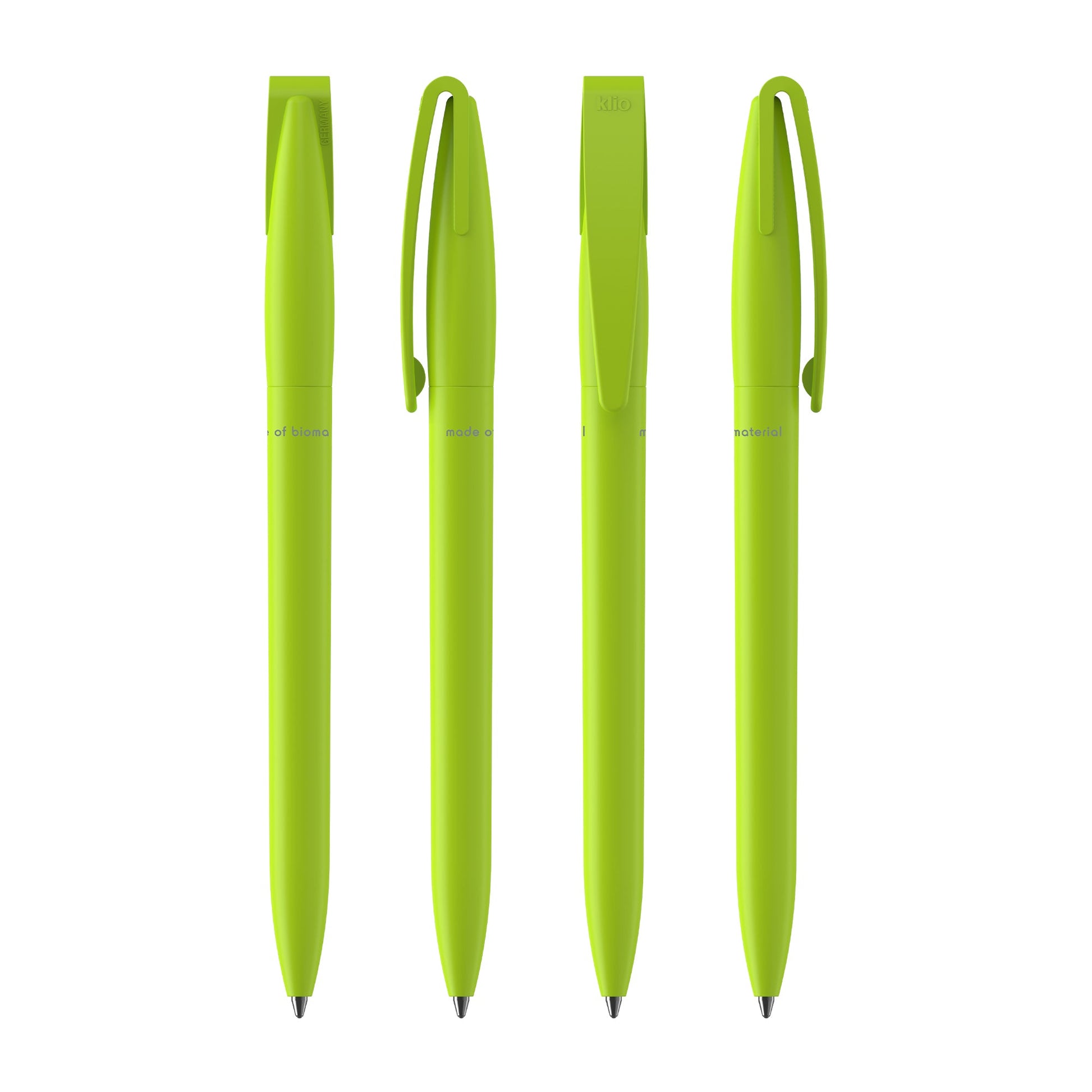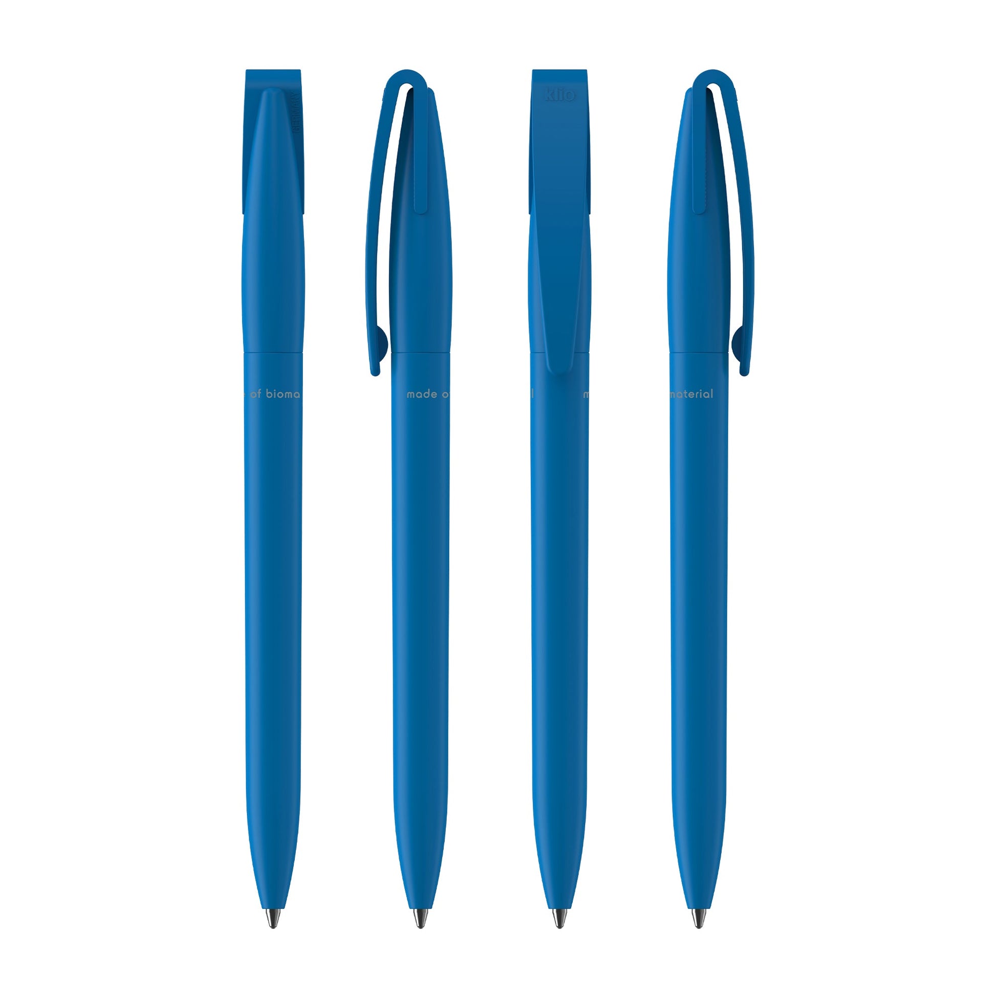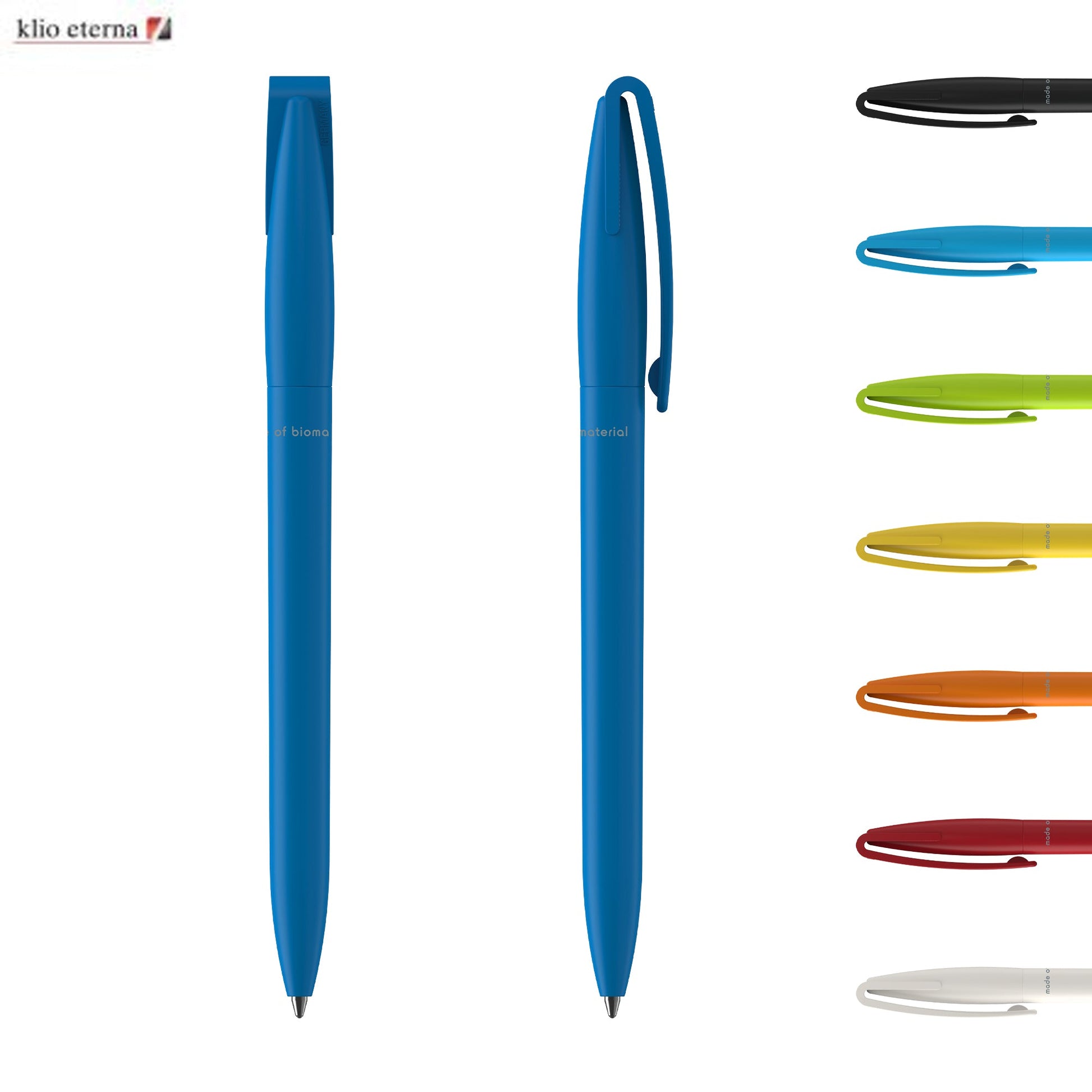 Klio the iconic European brand since 1900 now available worldwide. (Klio Model: 41017) Introducing our eco-friendly twist-action pen crafted from biobased plastic made from plant starch (PLA) with a sleek matte finish. Paired with a high-quality silktech German-manufactured black ink refill meeting ISO 12757-2 standards it boasts a shelf life of 3 years and offers a remarkable 3000 meters writing distance triple the longevity of standard pens. Engineered with a tungsten carbide ball for smooth quality writing it's designed for sustainability without compromising performance. Made in Germany and exclusively available through Dex Collection in Australia and New Zealand. Minimum order of 500 units per colour; custom colours available for orders of 5000+.
