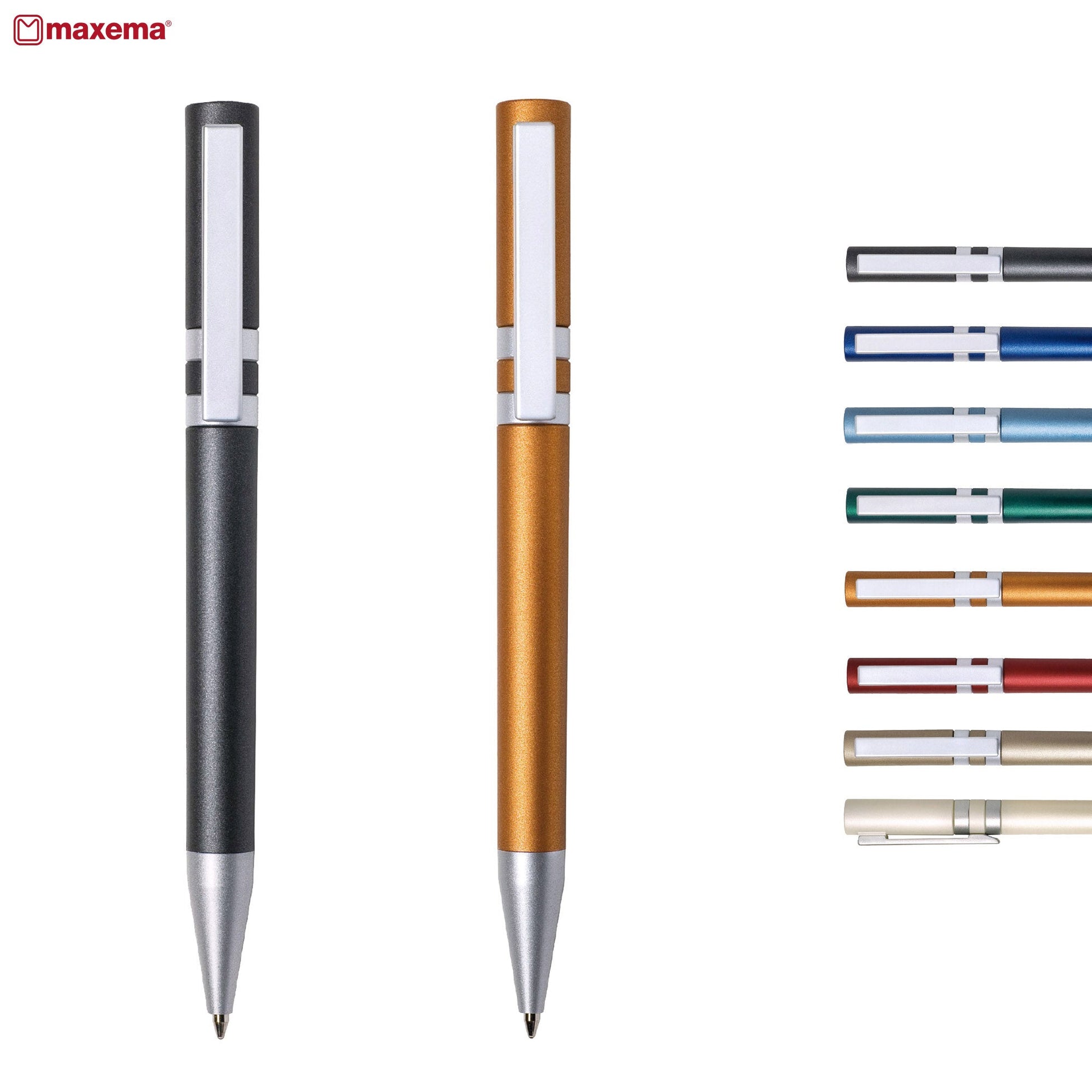 Maxema a premier Italian brand renowned for precision and elegance. The Ethic transcends fleeting trends embodying timeless elegance and the essence of your message. Customizable to your vision it provides ample space for promotional messages on the body cap and top. Despite its twist-action mechanism it's designed for seamless multi-color printing ensuring your message stands out vividly. With a vibrant metallic finish on the barrel and cap complemented by a matte silver clip and rings it exudes sophistication. Utilizing a galvanic process ABS parts are chrome or gold-plated for enhanced durability and luxury. Crafted from non-toxic highly resistant ABS plastic it boasts a jumbo refill available in black or blue ink offering up to 2500 meters of writing. Italian-designed and made exclusively available through Dex Collection in Australia and New Zealand. Minimum order: 1000 units per colour. Make your statement with The Ethic - where elegance meets purpose.