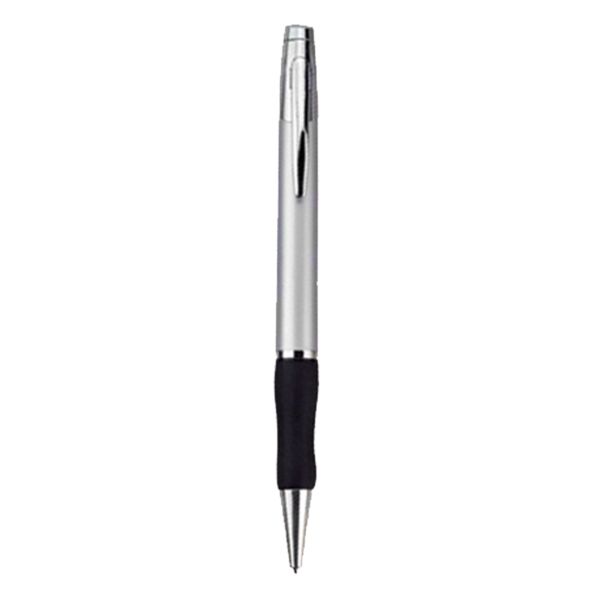 Twist action metal pen with rubber grip made of copper metal metallic painted barrel under-coated with shiny silver chrome which engraves to a mirror finishing image. Shiny silver chrome fittings and has a metal Cross-Type German manufactured black ink refill 1800 meters writing distance tungsten carbide ball provides you with quality writing.